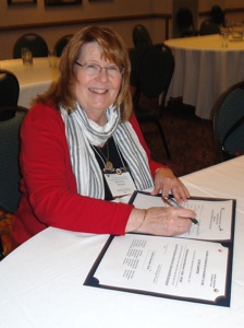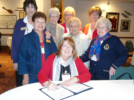 Nancy Norton signing the club charter.